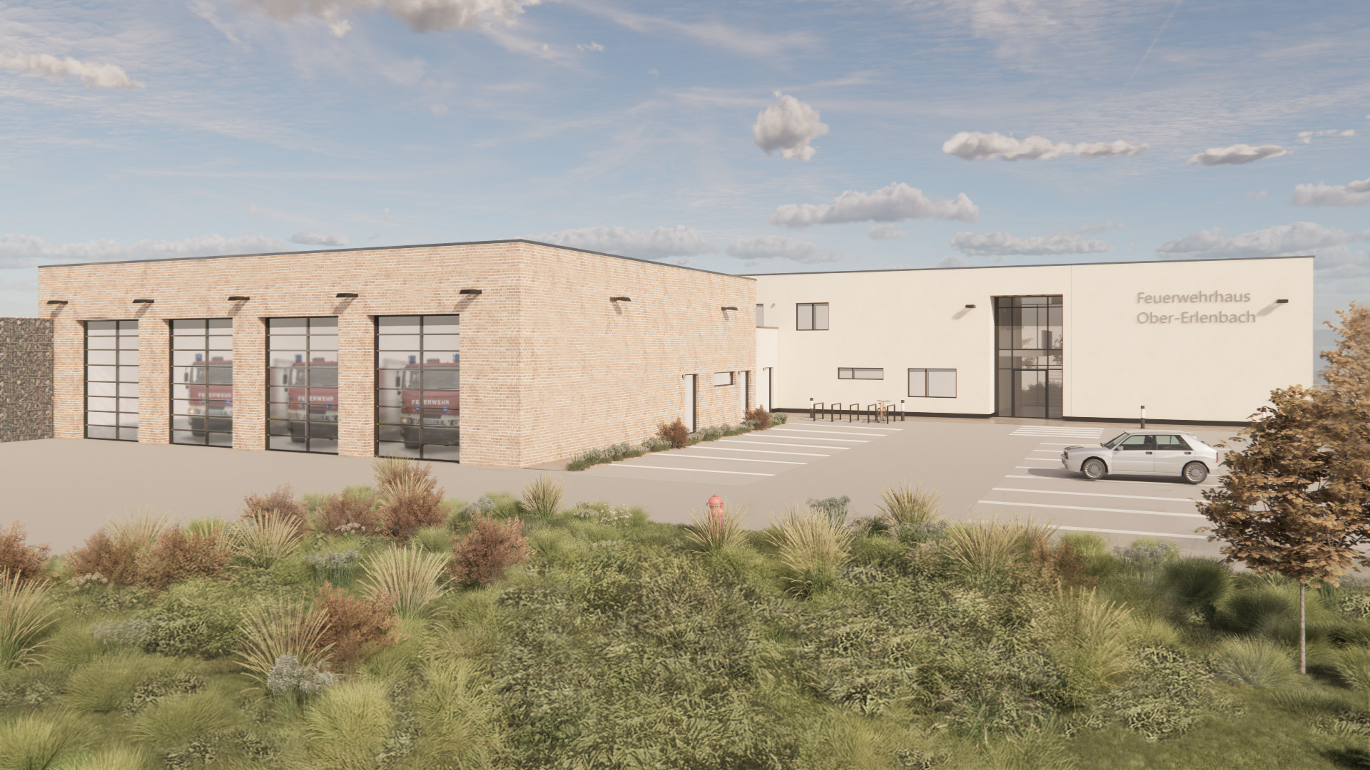 Auf einem 4.560 m² großen Baugrundstück im östlich gelegenen Bad Homburger Stadtteil Ober-Erlenbach soll ein neues Feuerwehrhaus entstehen. Das architektonische Gesamtkonzept reiht sich mit seiner Idee der wiederkehrenden Modularität bei gleichzeitig individuellem Erscheinungsbild in die Serie der Feuerwehrneubauten für die Ortsbezirke der Stadt Bad Homburg v. d. Höhe ein. Um hier unabhängig von den Grundstückszuschnitten jeweils gleichwertige Feuerwehrhäuser zu realisieren, wurde eine nutzungsspezifische Modulbauweise entwickelt.